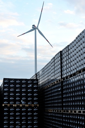 40% of electricity demand from the brewery is covered by a windmill on the area of brewery.